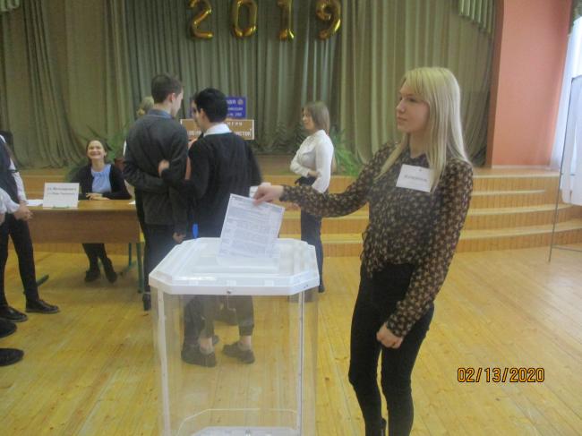 13 февраля в рамках Декады молодого избирателя в актовом зале школы прошла ролевая игра «Избирательный участок». Цель данного мероприятия: формирование у молодежи активной жизненной позиции, готовности участвовать в общественной политической жизни страны; изучение основ избирательного процесса; повышение значимости выборов в глазах будущих избирателей. На мероприятии присутствовала Верзилина Е.В., которая является председателем избирательного участка №299.Она подробно рассказала ребятам, как проходит подготовительный этап выборов и сами выборы, объяснила процедуру голосования. Затем все участники были приглашены на избирательный участок и приняли участие в процедуре голосования. На избирательном участке присутствовали наблюдатели от кандидатов, представители СМИ. Ребята прошли всю процедуру голосования.